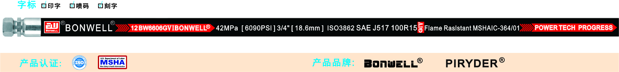 軟管執(zhí)行:ISO 3862-2020標準,SAE 100R15-2013標準,GB/T10544-2022標準