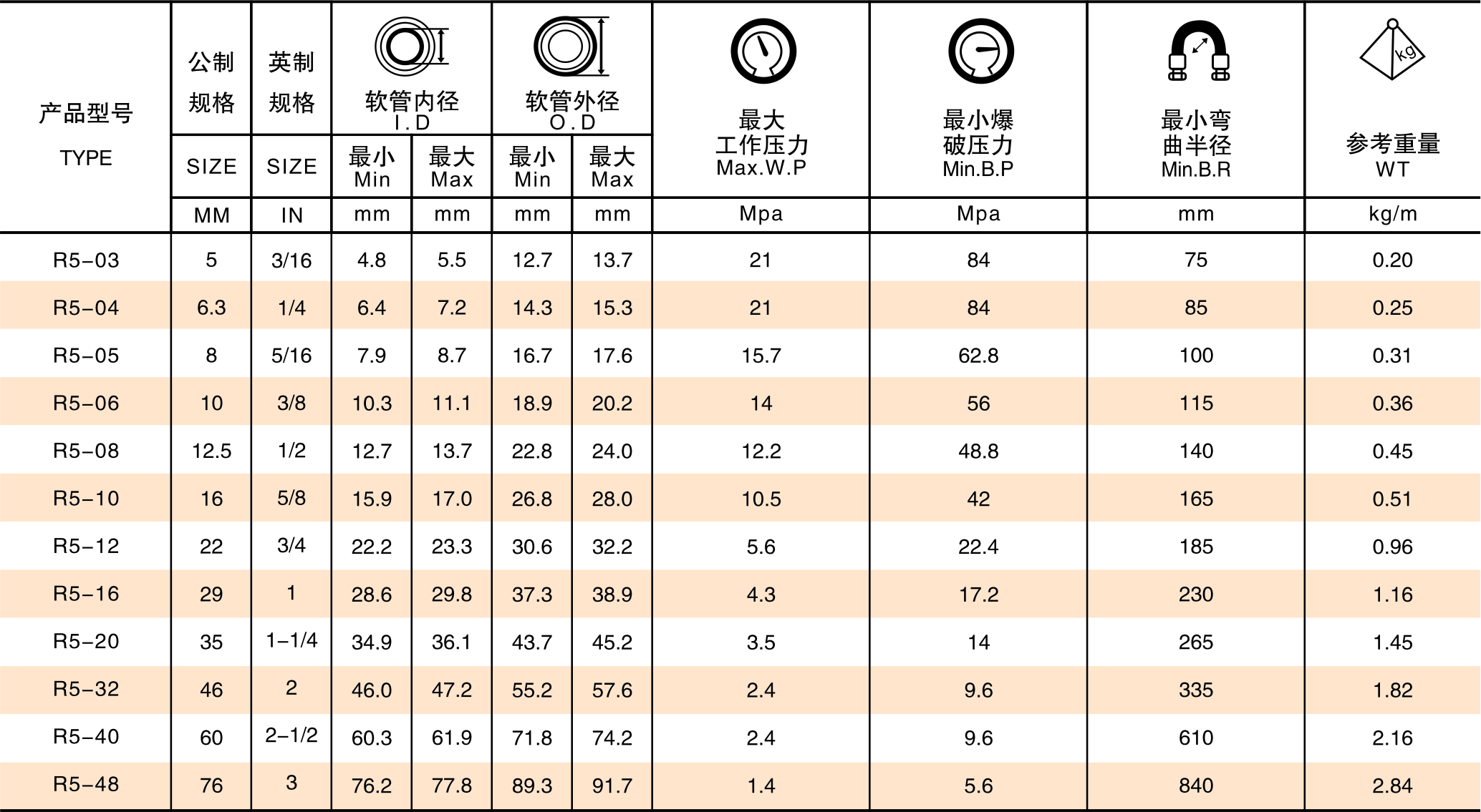 軟管執(zhí)行:SAE J517 100R5-2013 標準